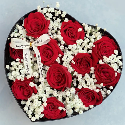 【爱的秘密】11朵红玫瑰,搭配满天星丰满间插。