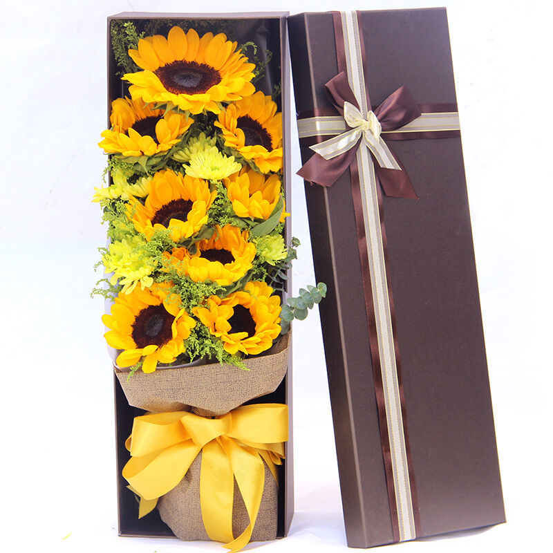 【笑看人生】精选8支向日葵,搭配黄英点缀。