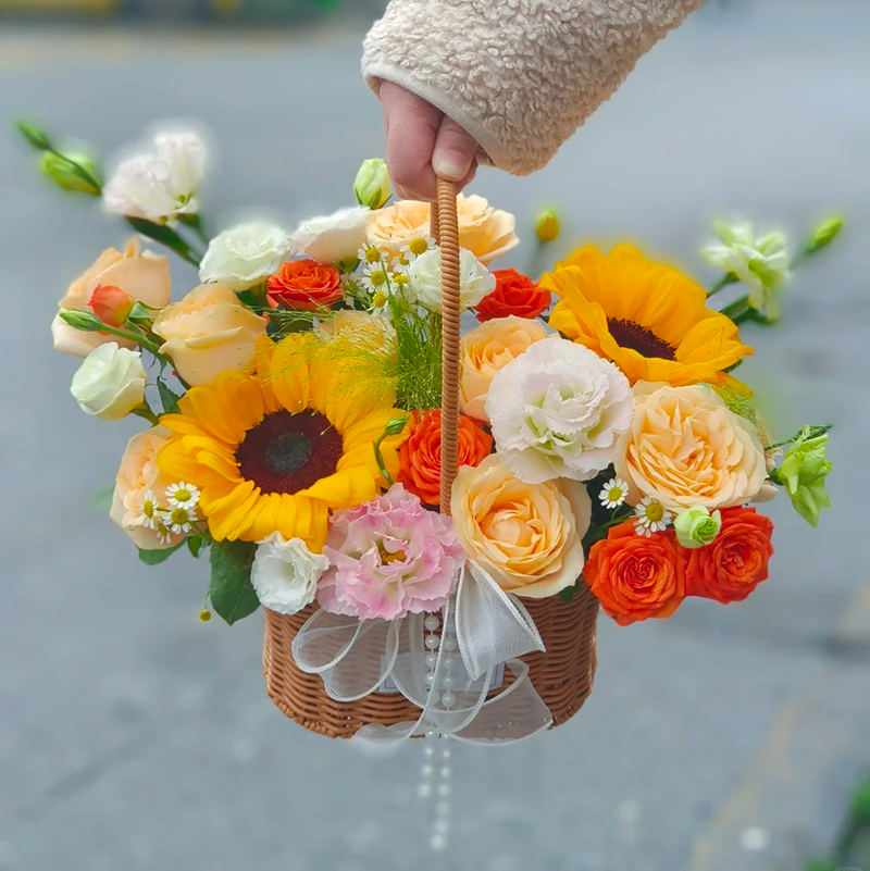 包装: 精美手提花篮,提手用珠串和蕾丝缎带装饰。(篮子和配饰等具体以当地实物为准)