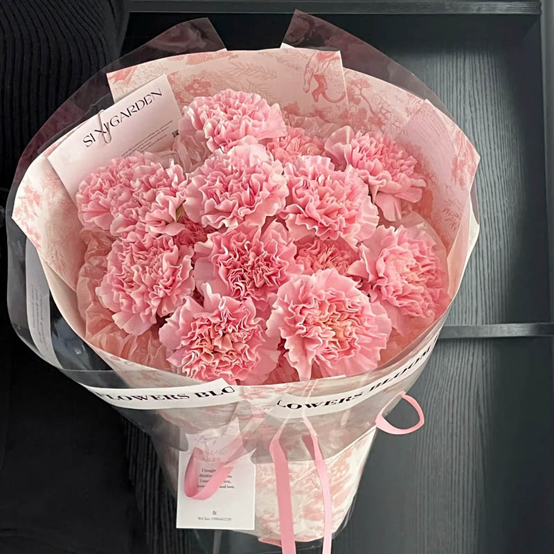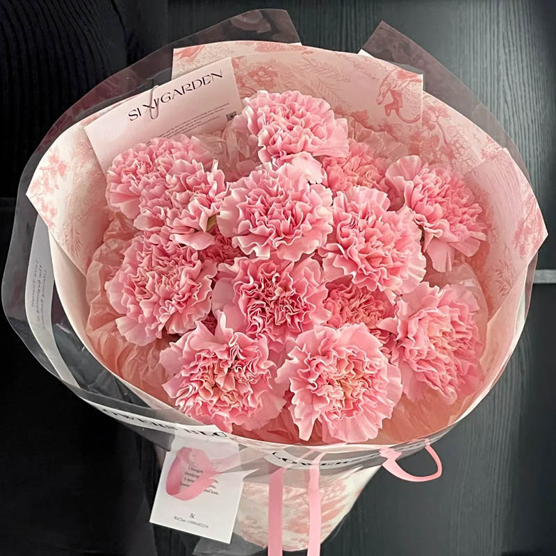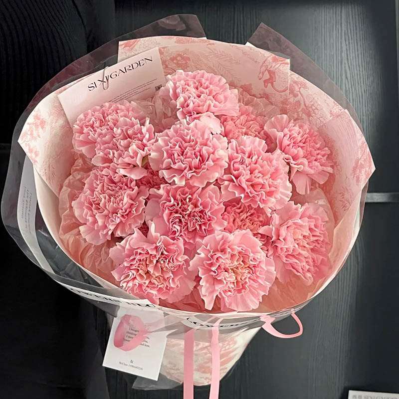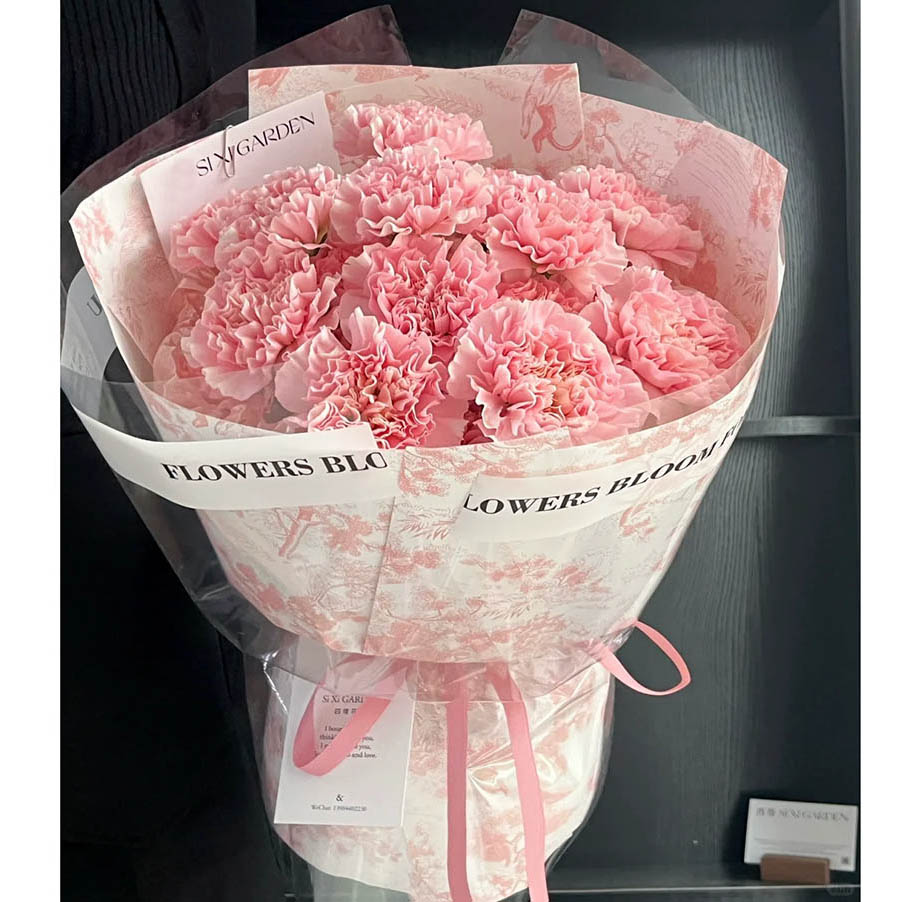 花 材:精选19枝粉色康乃馨。