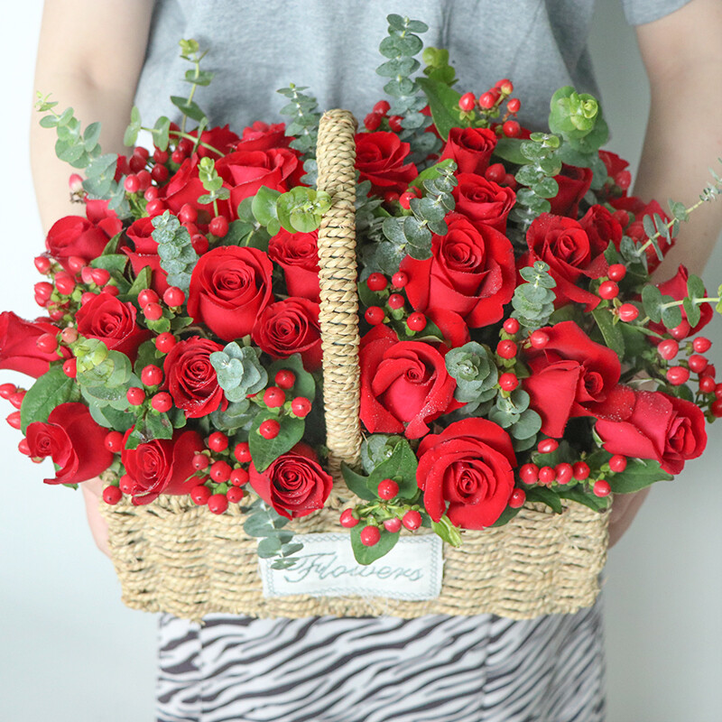 包装: 精美手提花篮(花篮和配饰等具体以当地实物为准)
